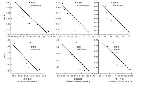 圖1吡蟲啉藥液表面張力與接觸角的關系
