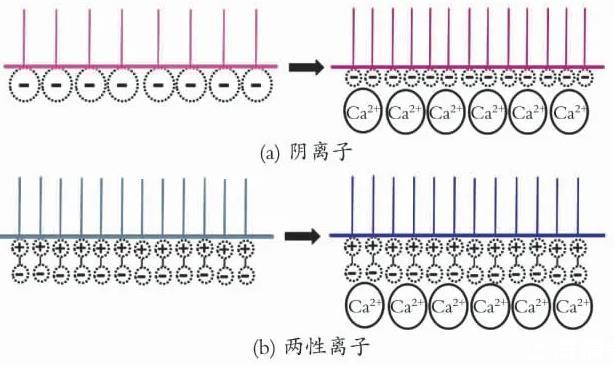 圖1 Ca2+對不同類型表面活性劑界面排布的影響