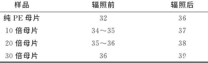 表1不同發泡倍率母片輻照處理前后的表面張力