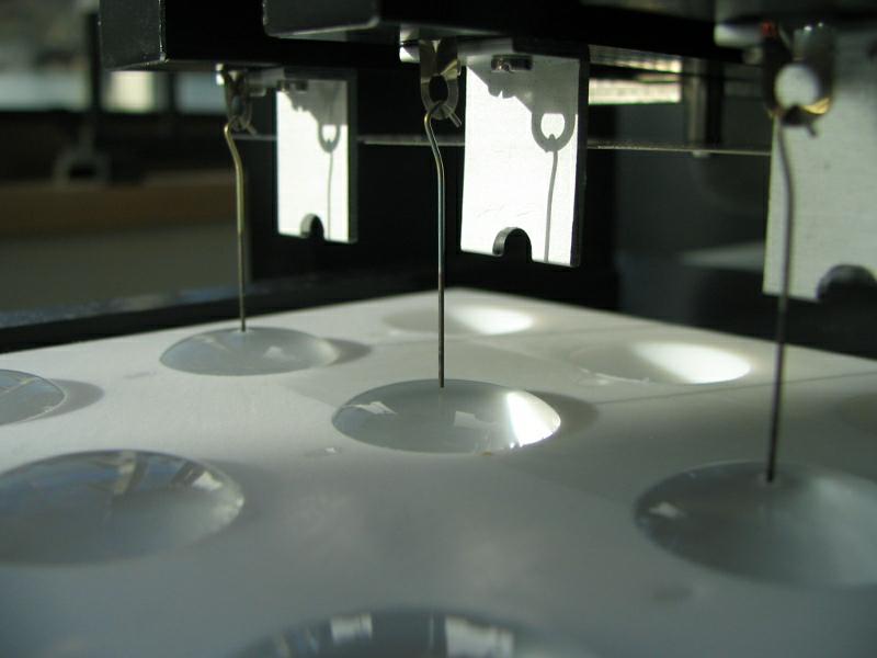為了給用戶提供最為精確的表面張力/表面壓力,Kibron發(fā)展了一種新的精度超過0.2微克的微量天平,這種靈敏度與“最大拉力”原理相結(jié)合進(jìn)行測量。測量時(shí)先將一個探針浸入到界面,然后慢慢拔出,記錄彎液面(粘附在探針上的液面)的重量,該重量用于計(jì)算表面張力。